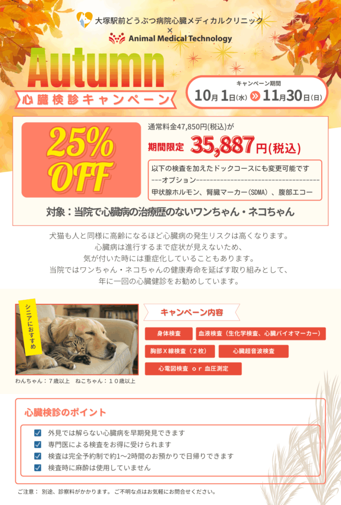 今は元気そうに見えるけど、心臓病が心配という方はこの機会に是非キャンペーンをご利用ください。